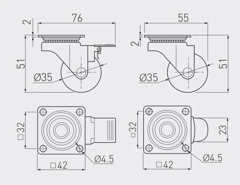 Kółko meblowe Brazylia czarne 35mm (z hamulcem)