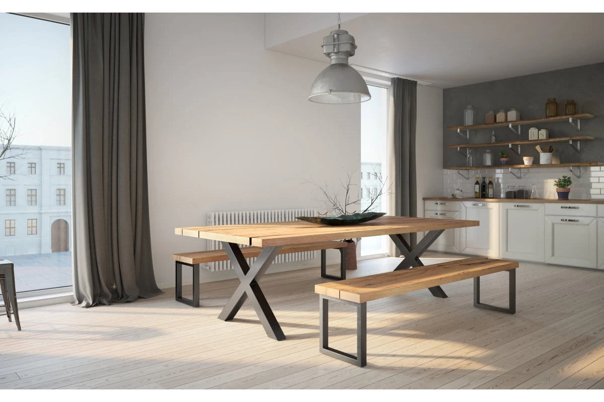 Stół to serce domu i miejsce spotkań z rodziną i przyjaciółmi. Stelaże INDUSTRIA pozwalają zbudować wymarzony stół według indywidualnego pomysłu. Stanowią doskonałe podparcie dla solidnego blatu z litego drewna. INDUSTRIA to połączenie estetyki i funkcjonalności. Kolekcja ta odnajdzie się w każdej przestrzeni urządzonej w stylu loftowym, ale będzie również doskonale współgrać ze skandynawskim minimalizmem czy nowoczesnym designem, gdzie przełamie utarte, znane aranżacje. Wszystkie stelaże INDUSTRIA mają szerokość 820 mm i wysokość 710 mm. Stelaże INDUSTRIA w kształcie litery X są dostępne w trzech grubościach: 20, 40 lub 80 mm. Wszystkie są malowane proszkowo na modny matowy kolor czarny, więc z łatwością dopasujemy je do każdego wnętrza i indywidualnych potrzeb.