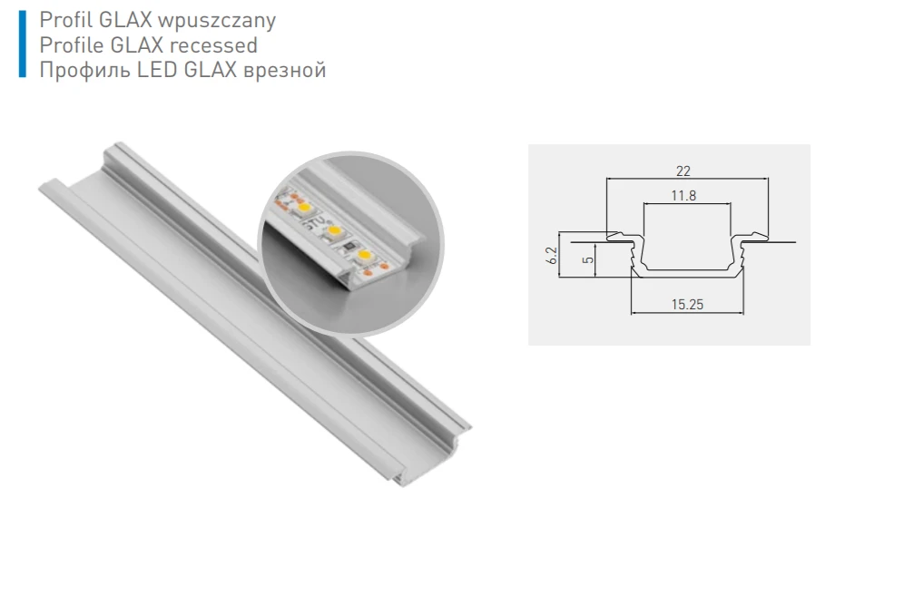 Profil do taśmy LED wpuszczany GLAX z kloszem mlecznym