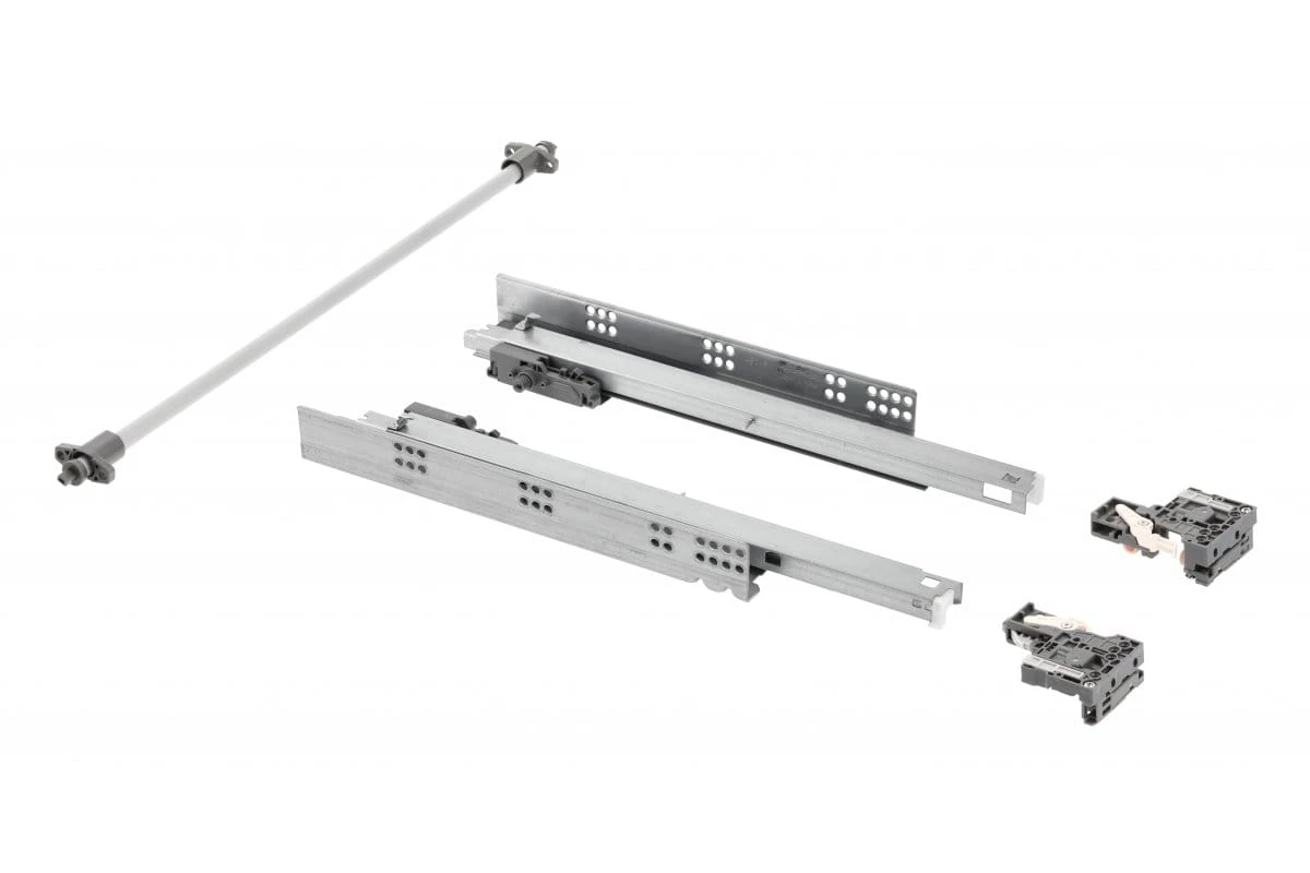 Prowadnica dolnego montażu Modern Slide Pro push to open, dostępna w ośmiu wariantach wymiarowych.
