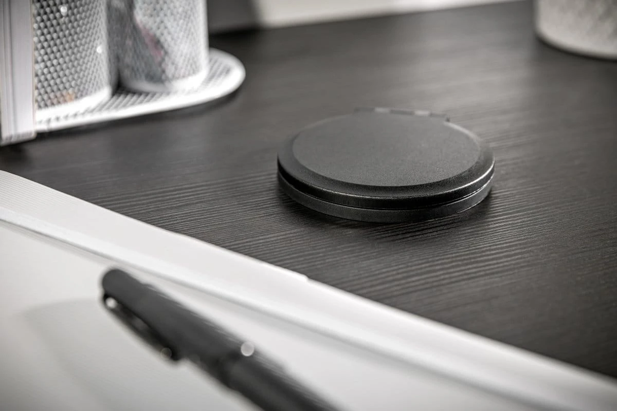 Łatwe w użytkowaniu, minimalistyczne gniazdo Charger Plus przeznaczone jest do wszelkiego rodzaju biurek i blatów np. kuchennych. Charakteryzuje się bardzo niskim elementem montażowym. Charger Plus wyposażony jest w ładowarkę indukcyjną zamieszczoną w wewnętrznej części pokrywy – aby naładować telefon, trzeba uchylić klapę. Posiada trzy wymienne gniazda, które czynią z niego uniwersalne rozwiązanie do strefy coworkingowej