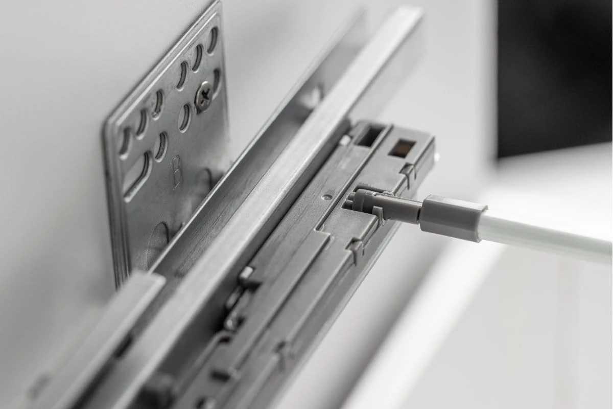 Szuflada AXIS PRO Push to open zapewnia pełny wysuw w długościach od 300 do 550 mm, a mechanizm push to open z synchronizacją otwarcia gwarantuje płynne otwieranie szuflady, poprzez nacisk na dowolne miejsce frontu szuflady. 5 wariantów wysokości sprawi, że idealnie dopasujesz ją do swojej kuchni, a bok szuflady o szerokości tylko 13 mm umożliwia maksymalne wykorzystanie wewnętrznej przestrzeni szuflady. Obciążenie szuflady pozwala na umieszczenie w niej aż 40 kg różnych produktów. Montaż szuflady jest łatwy dzięki komfortowej regulacji od wewnętrznej strony szuflady, regulacji pochylenia oraz regulacji poziomej w zakresie +- 2 mm.
