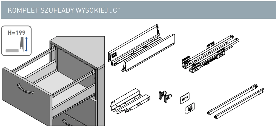 - Kolekcja szuflad i prowadnic Szuflada Modern Box PRO