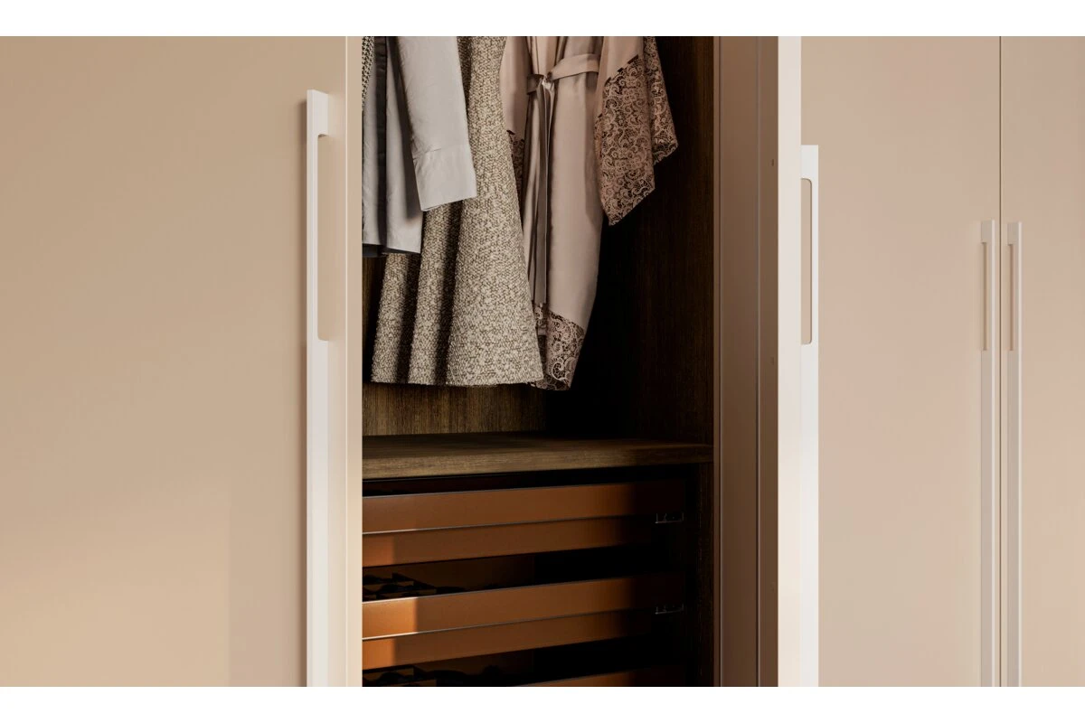Długi uchwyt EXTEND jest wykonany z aluminium. Przeznaczony do tradycyjnego otwierania wysokich i szerokich frontów. Uchwyt EXTEND wyróżnia na tle innych jego znaczna wysokość oraz smukłość. Wydłużona, smukła forma idealna do montażu na frontach szaf nie tylko zapewnia naturalne proporcje oraz estetykę całego mebla, ale i wpływa na jego funkcjonalność podczas otwierania ciężkich frontów. Znajdzie swoje zastosowanie zarówno w tradycyjnych domowych wnętrzach jak i w bardziej wystawnych, nowoczesnych salonach, sypialniach, czy nawet pokojach dziecięcych. Uchwyt EXTEND ma wysokość 1200 mm oraz jest dostępny w trzech uniwersalnych wariantach kolorystycznych: biały, jasne złoto szczotkowane, czarny mat oraz *kaszmirowy.
