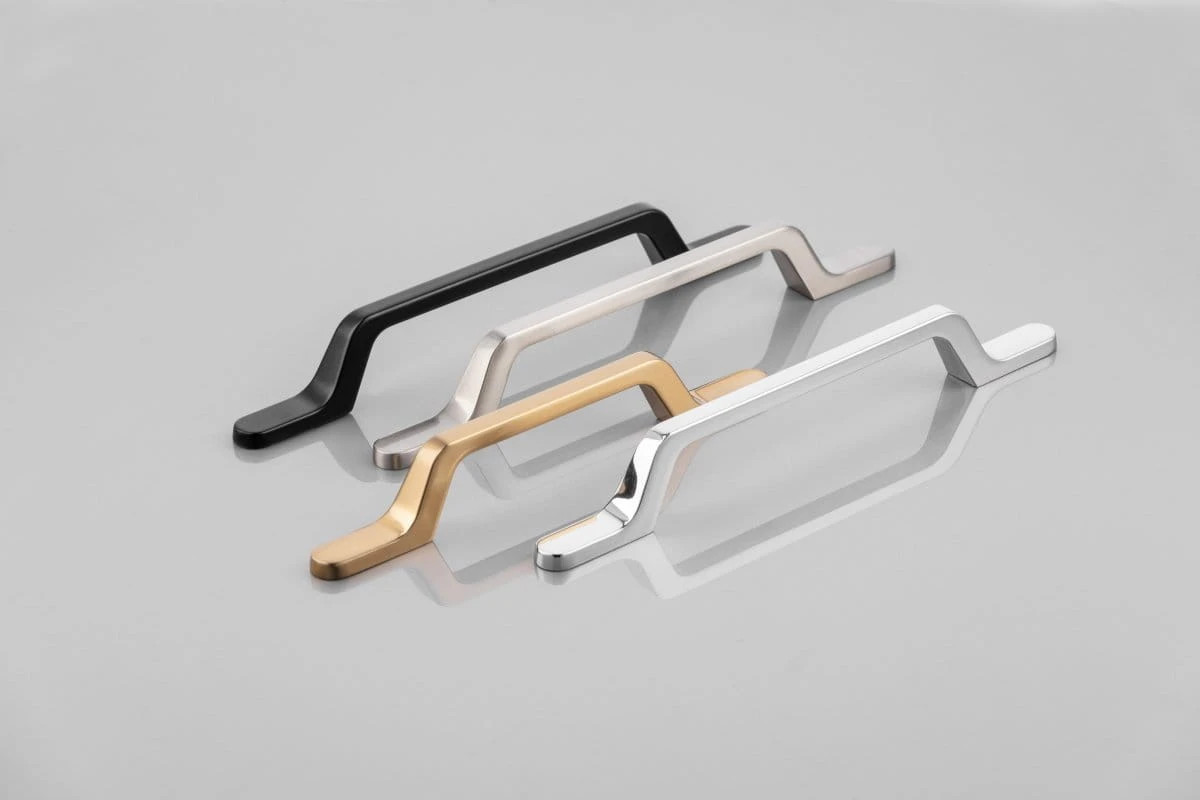 FLAVIO – kolekcja Flavio wpisuje się w najnowsze trendy w designie, w których króluje elegancka prostota. Uchwyt wyróżnia się doskonałym kształtem, a łamane brzegi dodają mu wyjątkowości. Będzie idealnie zdobił proste, wykonane w jednolitym kolorze fronty. FLAVIO występuje w czterech uniwersalnych kolorach: stali szczotkowanej, złotym mosiądzu, czarnym macie oraz mosiądzu sprawi, że z łatwością dopasujemy go do każdego pomieszczenia. Doskonałe do wnętrz urządzonych w stylu nowoczesnym, skandynawskim, minimalistycznym oraz loftowym, a także w stylu glamour.