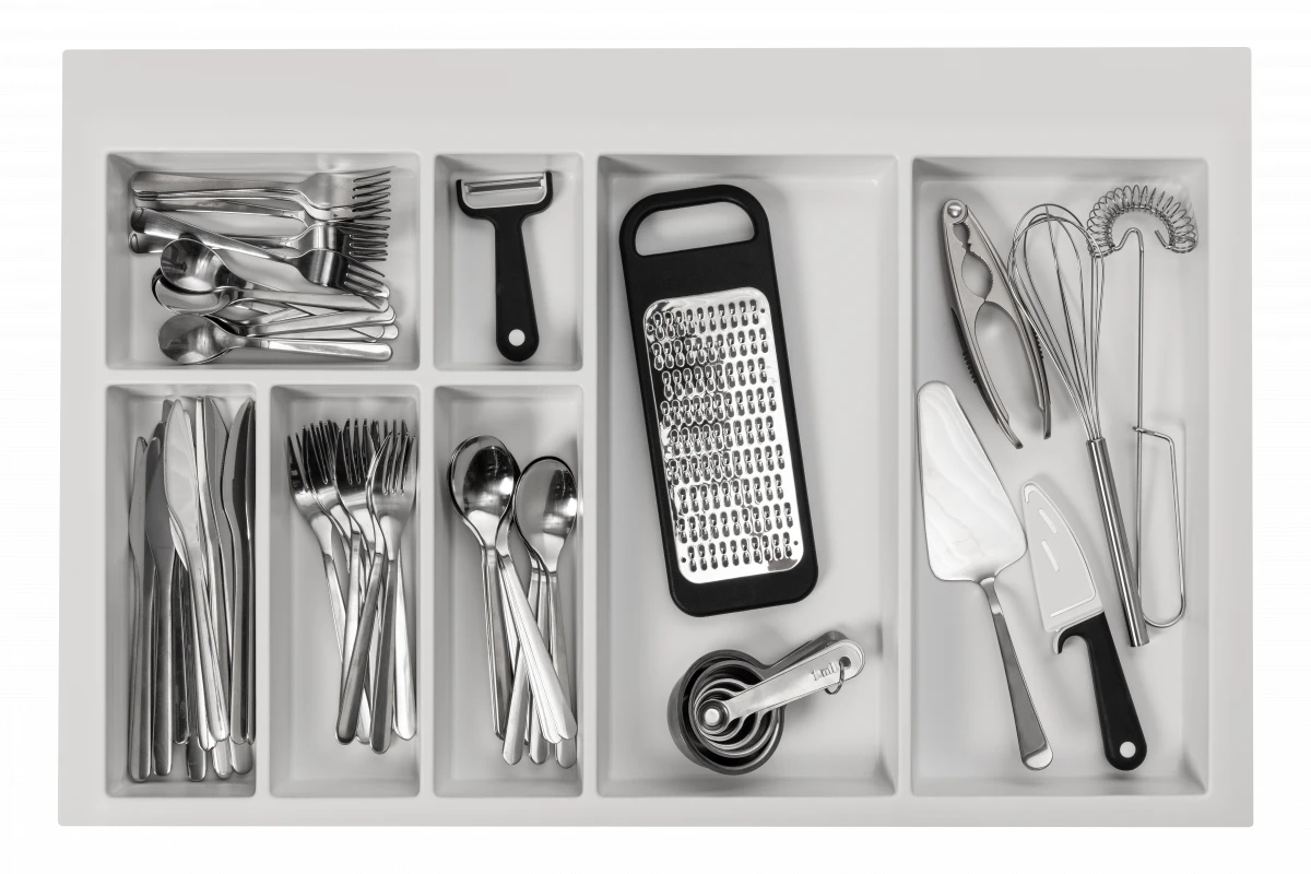 Wykonane z wysokiej jakości tworzywa wkłady do szuflad Axispace pozwalają efektywnie zagospodarować wnętrza szuflad kuchennych. Dzięki specjalnym podziałkom mamy możliwość odpowiedniego posegregowania i uporządkowania łyżek, noży, widelców i innych przydatnych akcesoriów kuchennych. Efekt wizualny to jednak nie jedyna zaleta tego produktu. Wkłady do szuflad są bardzo pojemne i praktyczne oraz pozwalają mieć wszystko w zasięgu ręki, co jest niezwykle istotne dla każdej osoby zajmującej się gotowaniem. W ofercie dostępne są segregatory o różnej wielkości (340-840 mm).