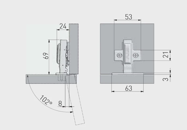 Zawias GTV hydrauliczny nakładany z prowad. Z/E / samodomykający